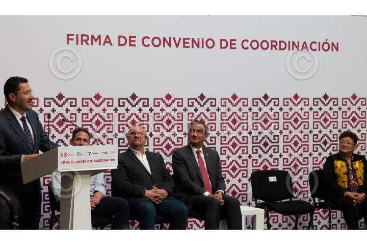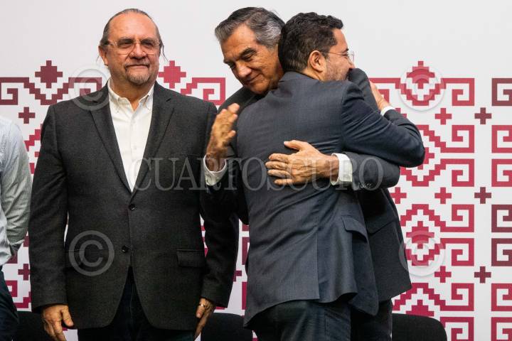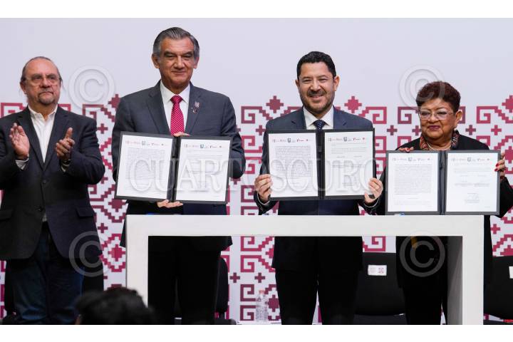 CIUDAD DE MÉXICO, 18OCTUBRE2023.- Martí Batres Guadarrama, jefe de gobierno de la Ciudad de México, y Américo Villareal, gobernador del estado de Tamaulipas, encabezaron la firma de convenio de coordinación entre las dos entidades para el mejoramiento en materia de seguridad. FOTO: GALO CAÑAS/CUARTOSCURO.COM