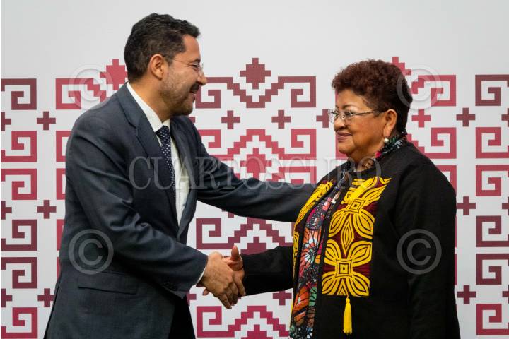 CIUDAD DE MÉXICO, 18OCTUBRE2023.- Martí Batres Guadarrama, jefe de gobierno de la Ciudad de México, y Ernestina Godoy, fiscal general de Justicia de la Ciudad de México, encabezaron la firma de convenio de coordinación entre la Ciudad de México y Tamaulipas mejoramiento en materia de seguridad. FOTO: GALO CAÑAS/CUARTOSCURO.COM