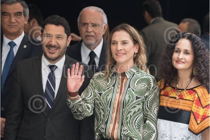 CIUDAD DE MÉXICO, 29MAYO2019.- Beatriz Gutiérrez Müller, esposa de Andrés Manuel López Obrador, presidente de México; y Martí Batres presidente de de la mesa directiva, durante la ceremonia de inscripción de letras de oro en homenaje a Amado Nervo en el Senado de la República. FOTO: MARIO JASSO /CUARTOSCURO.COM