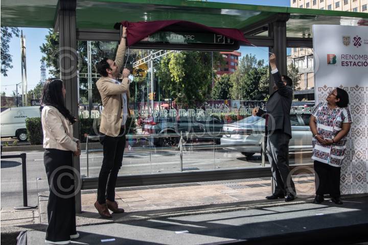 CIUDAD DE MÉXICO, 10OCTUBRE2013.- Martí Batres Guadarrama encabezó el Renombramiento de la estación Cristobal Colón de Metrobus por Amajac nombre d ella estatua colocada a un costado de la glorieta ubicada en paseo de la reforma. FOTO: ANDREA MURCIA /CUARTOSCURO.COM