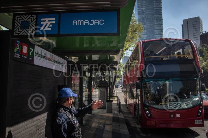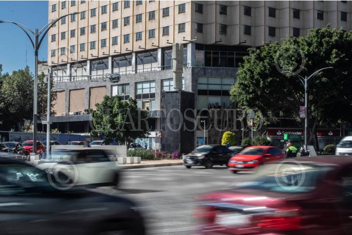 Trabajadores colocaron vallas metálicas donde será colocada la escultura de Amajac a un costado de la Glorieta de las mujeres que luchan en Paseo de la Reforma