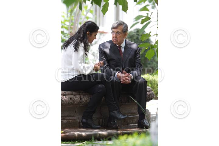 MÉXICO, D.F., 10JULIO2012.- El perredista, Cuauhtémoc Cárdenas Solórzano acompañado su esposa Celeste Batel, al termino del anuncio del otorgamiento del “Premio Amalia Solórzano 2012” en el Centro Lázaro Cárdenas y Amalia Solórzano. FOTO: GUILLERMO PEREA / CUARTOSCURO.COM