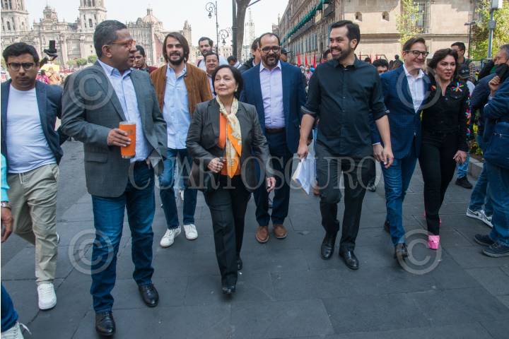 CIUDAD DE MÉXICO, 19NOVIEMBRE2024.- Las senadoras Amalia García y Alejandra Barrales, así cómo Luis Donaldo Colosio acudieron a la entrega de documentación del ex candidato presidencial, Jorge Álvarez Máynez, para registrarse cómo aspirante a la dirigencia nacional ante el partido. FOTO: GALO CAÑAS/CUARTOSCURO.COM