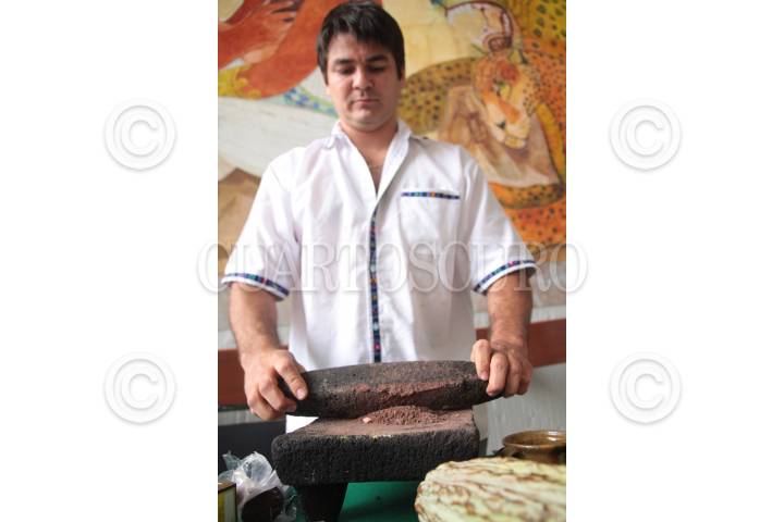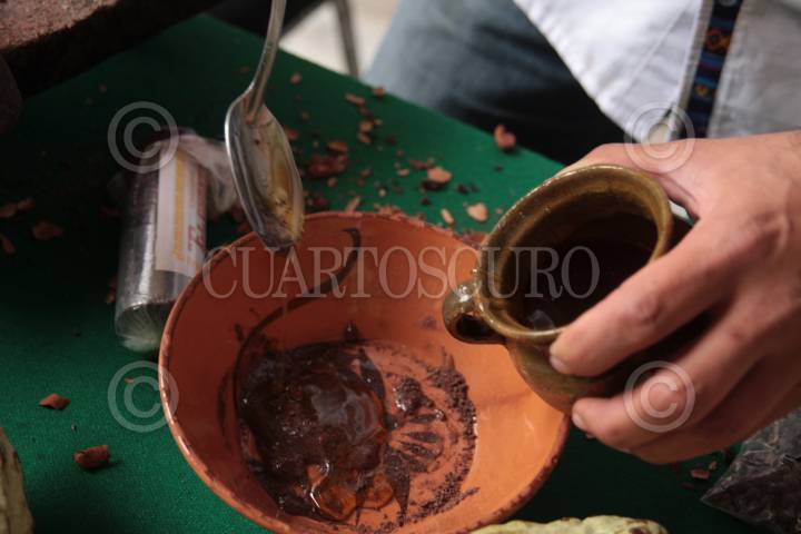 VILLAHERMOSA, TABASCO, 18MARZO2010.- La hacienda cacaotera "Cholula" realizo la presentación de una receta secreta que utilizaban los Olmecas en sacrificios especiales en doncellas; esta receta consiste básicamente en chocolate amargo, pimienta, achiote y miel. Lo anterior acontece en el 1er Foro Regional de Cultura y Turismo. FOTO: MARCO POLO GUZMÁN HERNÁNDEZ/CUARTOSCURO.COM