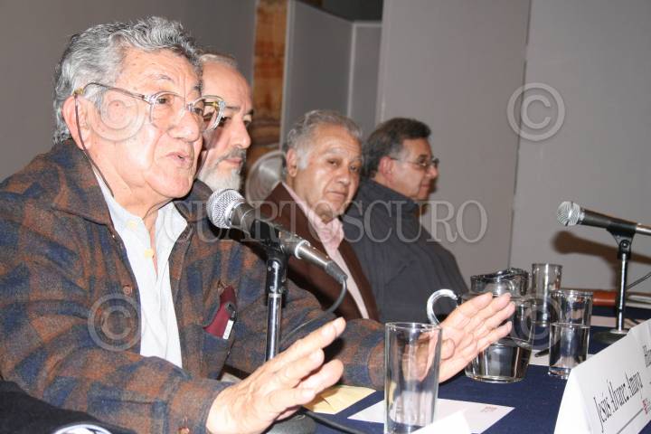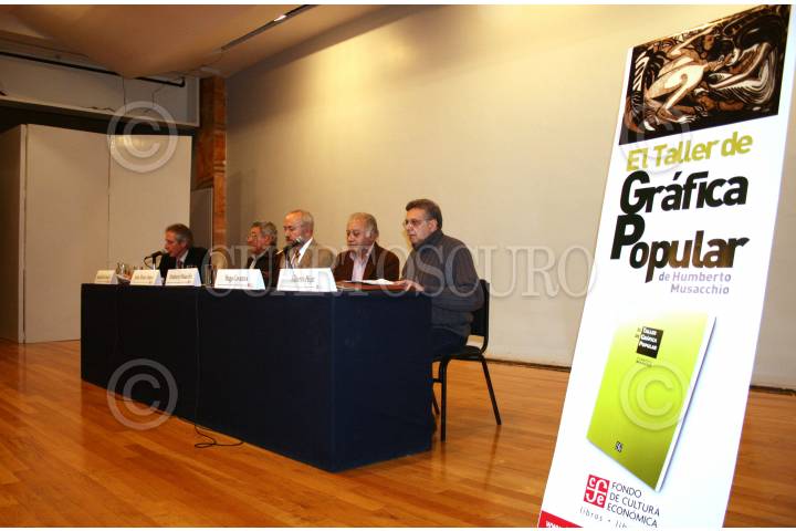 MÉXICO. D.F. 10SEPTIEMBRE2007.-Jesús Álvarez Amaya, Hugo Covante y Alberto Híjar acompañaron a Humberto Musacchio en la presentación de libro "El Taller de Grafíca Popular" que es editado por el Fondo de Cultura Económica. FOTO:RICARDO CASTELAN/CUARTOSCURO.COM
