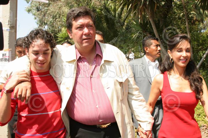MÉXICO, D.F., 04JUNIO2011.- Maria Elvia Amaya, esposa de Jorge Hank Rhon, emitió un comunciado en el que denuncio la irrupción violenta por parte de elementos del ejército en el cateo en el que se detuvó a su esposo, además señalo que todas las armas cuentan con el permiso correspondiente y que los elemtos castrenses no contaban con la orden correspondiente para realizar la diligencia judicial. En imagen de archivo correspondiente al 5 de Agosto de 2007 es acompañada de su marido y su hijo. FOTO: ARCHIVO/VICTORIA VALTIERRA/CUARTOSCURO.COM