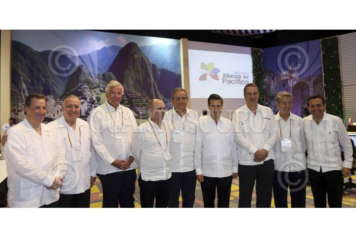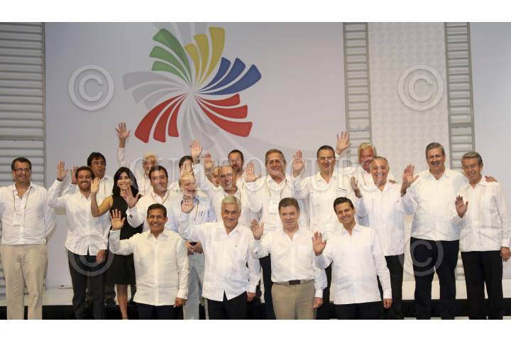 CARTAGENA DE INDIAS, COLOMBIA, 10FEBRERO2014.- Como parte de los trabajos de la Octava Cumbre de la Alianza del Pacífico, los Presidentes de México, Enrique Peña Nieto; Chile, Sebastián Piñera; Colombia, Juan Manuel Santos; y Perú, Ollanta Humala; encabezaron una reunión con los miembros del Consejo Empresarial de la Alianza. Acompañaron al Mandatario mexicano los Secretarios de Economía, Ildefonso Guajardo, y Relaciones Exteriores, José Antonio Meade Kuribreña. FOTO: CUARTOSCURO.COM