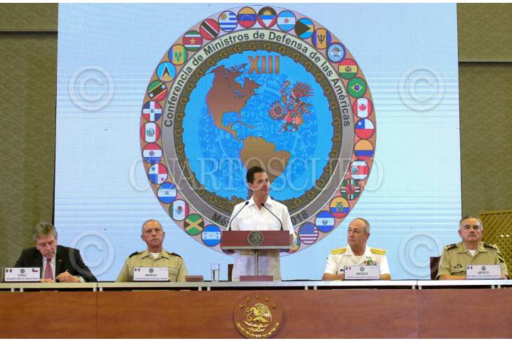 CANCÚN, QUINTANA ROO, 09OCTUBRE2018.- El presidente Enrique Peña Nieto , encabezó la ceremonia de clausura de la 13ª Conferencia de Ministros de Defensa de las Américas. la cual está integrada y dirigida por los Ministerios de Defensa del Continente Americano. FOTO: PRESIDENCIA /CUARTOSCURO.COM