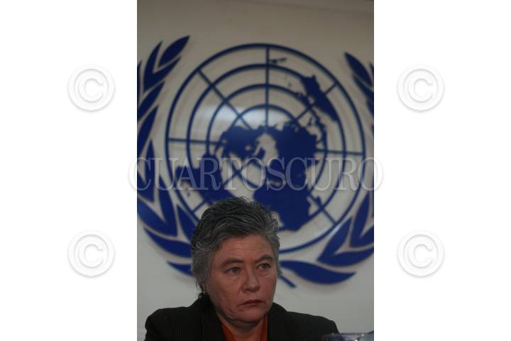 MÉXICO D.F., 08FEBRERO2008.- Louise Arbour, Alta Comisionada de Derechos Humanos de las Naciones Unidas y Amerigo Incalcaterra, representante de la oficina del alto comisionado de las Naciones Unidas para los derechos humanos durante una conferencia de prensa que ofrecieron a los medios de comunicación. FOTO: RODOLFO ANGULO/CUARTOSCURO.COM
