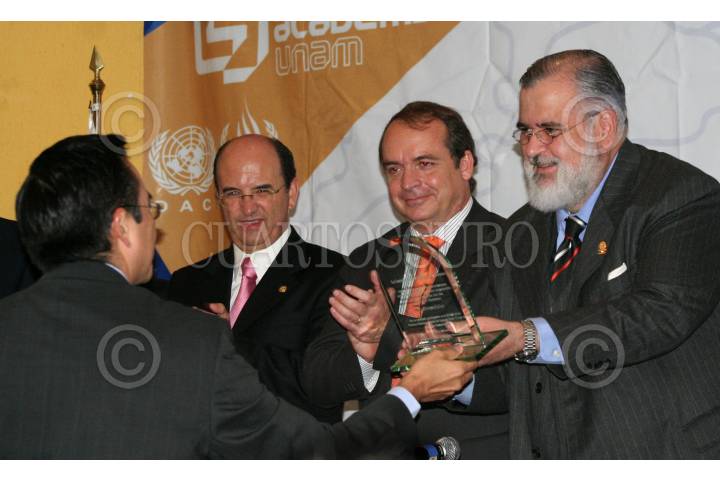 MÉXICO, D.F. 08DICIEMBRE2006.- EL Presidente de la comisión Nacional de Derechos Humanos José Luis Soberanes, clausuró el Segundo Rally Virtual de Derechos Humanos. El ombudsman hace entrega de u reconocimiento a un participante. Amérigo Incalcaterra representante de la Oficina del Alto Comisionado de las Naciones Unidas y Diego Díaz de Cossio, reprsentante de los laboratorios Roche estuvieron presentes. FOTO: PAOLA HIDALGO/CUARTOSCURO.COM