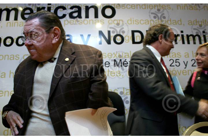 MÉXICO,D,F.,25SEPTIEMBRE2007.- Gilberto Rincón Gallardo, Amerigo Incalcaterra durante la sesión inagural del encuentro Iberoamericano sobre desarollo social,democracia y no discriminacion. FOTO:SASHENKA GUTIERREZ/CUARTOSCURO.COM