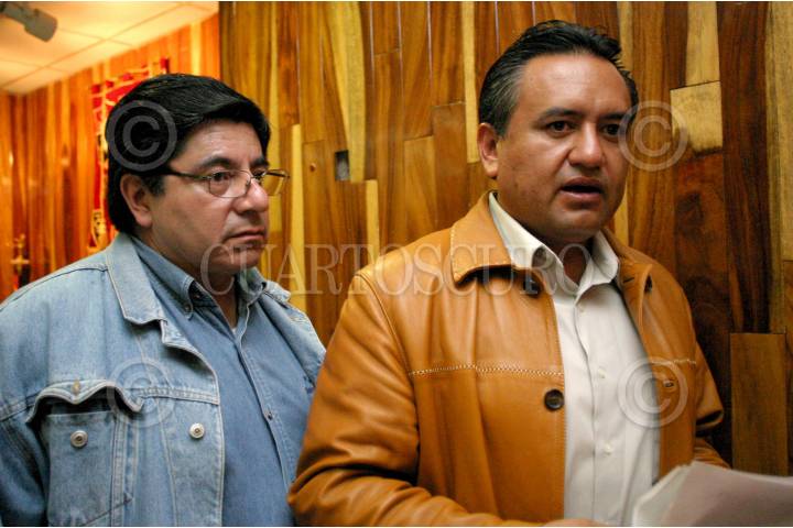 MÉXICO D.F. 15 JUNIO2006.- Fernando Amescua, secretario del Interior del SME, Martin Esparza Flores, secretario general del SME, durante la conferencia de prensa donde dieron a conocer los acaciones a seguir después de los hechos ocurridos en Oaxaca. FOTO: Guillermo Perea/CUARTOSCURO.COM