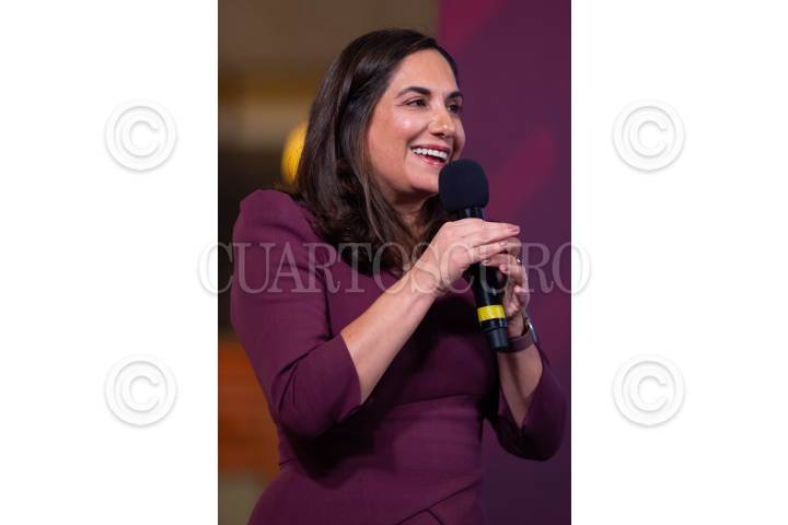 Laura Elena Carrillo durante la conferencia matutina desde Palacio Nacional