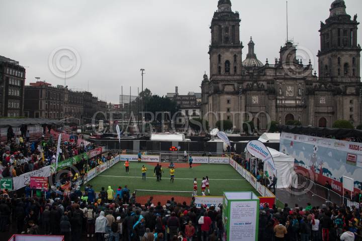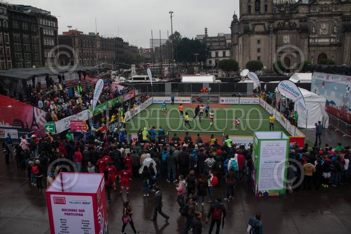 CIUDAD DE MÉXICO, 14NOVIEMBRE2018.- Pese el clima y las dificultades por las canchas mojadas, continúan las actividades del Homeless World Cup México 2018 -la copa Mundial de Personas sin Hogar- en su edición 16 y que se lleva a cabo en el icónico Zócalo de la Ciudad de México, del 13 a 18 de noviembre. FOTO: PRENSA HOMELESS /CUARTOSCURO.COM
