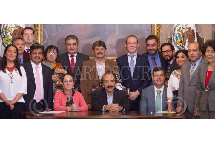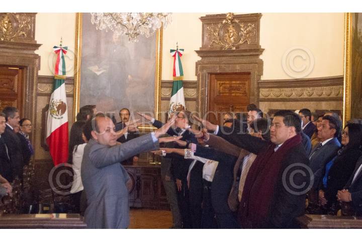 CIUDAD DE MÉXICO, 03DICIEMBRE2018.- Esta tarde el H. Ayuntamiento de la Ciudad, se llevo acabo la ceremonia de la instalación de la mesa de cabildos, con la asistencia de alcaldes. El evento lo encabezaron, la jefa del Gobierno electa, Claudia Sheinbaum y José Ramon Amieva y el presidente de la mesa directiva del Congreso de la Ciudad, Jesús Martín del Campo. Francisco Chíguil, Clara Brugada y Victor Romo, entre los alcaldes que asistieron. FOTO: VICTORIA VALTIERRA / CUARTOSCURO.COM