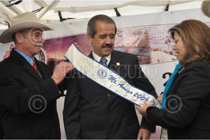 FRONTERA DE PIEDRAS NEGRAS, COAH, 15 MARZO 2009.- Jose Ángel Córdova Villalobos el nombramiento de Mr. Amigo durante el “ abrazo de la amistad” de estas dos ciudades hermanas. FOTO: EDUARDO MORALES/CUARTOSCURO.COM