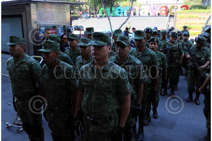 CUERNAVACA, MORELOS03ABRIL2019.- A partir de este 3 de abril se aplica el programa “Soldado Amigo” en esta capital. El programa consiste en recorridos a pie que realizarán tres elementos castrenses desarmados, dos hombres y una mujer, para prevenir el delito y socializar la incorporación de las fuerzas armadas en la vigilancia policíaca. FOTO: MARGARITO PÉREZ RETANA /CUARTOSCURO.COM