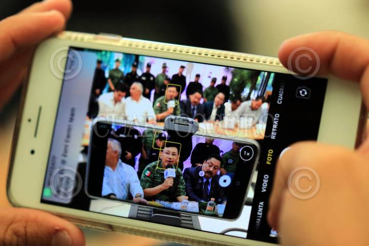 CUERNAVACA, MORELOS, 07FEBRERO2019.- Conferencia de prensa donde el Consejo Ciudadano de Seguridad Publica presento el programa "Soldado amigo" por medio del cual se capacitará a los militares en temas de derechos humanos y prevención del delito, además de que a partir de este momento soldados podrán ingresar a los comercios que participan en el programa para que coadyuven en la inhibición de delitos, anunció el General de la 24 Zona Militar Armando Gómez Mendoza. En la imagen de izquierda a derecha los empresarios Harry Nielsen, José Antonio Sánchez Púron, el comisionado de seguridad José Antonio Ortiz Guarneros, el presidente del consejo, Rafael Rueda Moncalian, el comandante de la 24 Zona Militar Armando Gómez Mendoza y Jorge Olivares Brito presidente de la Comisión Estatal de Derechos Humanos. FOTO: MARGARITO PÉREZ RETANA /CUARTOSCURO.COM