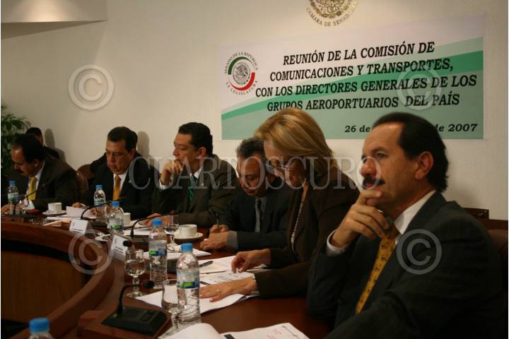 MÉXICO,D,F.,26SEPTIEMBRE2007.- Los senadores Juan Buenotorio, Amira Gómez,Sebastián Calderón,Humberto Rueda ,Ángel Heladio Aguirre, Antonio Mejia,durante la reunión de la comisión de comunicaciones y trasportes con los directores generales de los grupos aeropuertuarios del país. FOTO:SASHENKA GUTIERREZ/CUAROTSCURO.COM