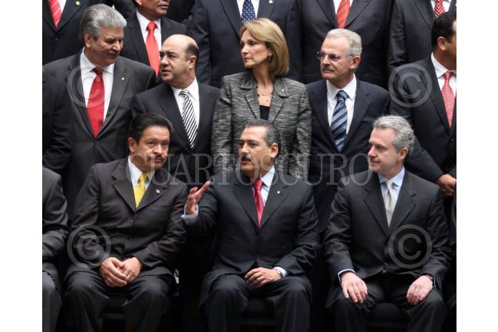 MÉXICO D.F., 13DICIEMBRE2007.- Los 128 senadores de la República de la LX Legislatura se tomaron la fotografía en el patio central del senado. En la lmagen arriba: Carlos Aceves del Olmo, Jesús Murillo Karam, Amira Goméz, Francisco Labastida y abajo: Carlos Navarre, Manlio Favio Beltrones y Santiago Creel. FOTO: CUARTOSCURO.COM