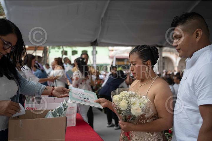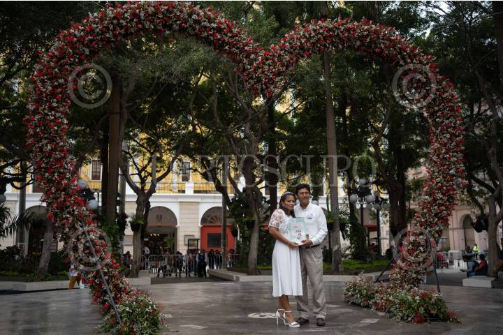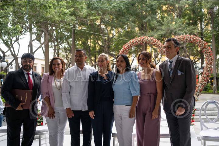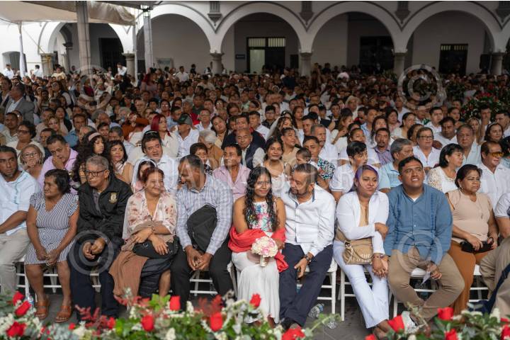 VERACRUZ,VERACRUZ,14FEBRERO2025.- Alrededor de 1055 parejas asistieron al zócalo de la ciudad de Veracruz para casarse por la convocatoria de las bodas colectivas convocada por el ayuntamiento de Veracruz. La alcaldesa Patricia Lobeira, asistió acompañada del enlace de la oficina del Registro Civil para hacer oficiales las uniones que se realizaron en el marco del Día del Amor y la Amistad. FOTO: VICTORIA RAZO/CUARTOSURO.COM