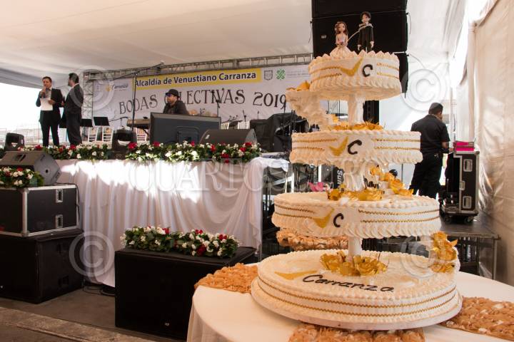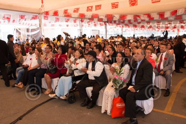 CIUDAD DE MÉXICO, 14FEBRERO2019.- Más de 300 parejas se dieron cita en la explanada de la alcaldía Venustiano Carranza para unirse en matrimonio, esto como parte de las celebraciones por el Día de San Valentín en la demarcación. Estas bodas colectivas fueron acompañadas de stands de registro civil, regalos para los novios, pastel y hasta tacos para los invitados. En ediciones pasadas la alcaldías de Tlalpan y Álvaro Obregón fueron las que registraron más uniones con dos mil 398 y mil 805 parejas, respectivamente. FOTO: ROGELIO MORALES /CUARTOSCURO.COM