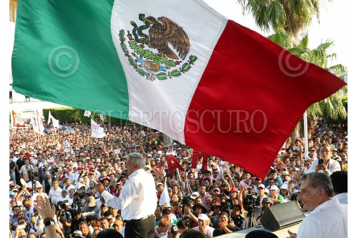 COMALCALCO, TABASCO, 28ABRIL2018.- Andrés Manuel López Obrador, candidato de MORENA a la presidencia de la república, se reunió con centenares de personas y simpatizantes de su partido en la plaza municipal, donde dio a conocer su propuesta de gobierno. FOTO: SAÚL LÓPEZ /CUARTOSCURO.COM