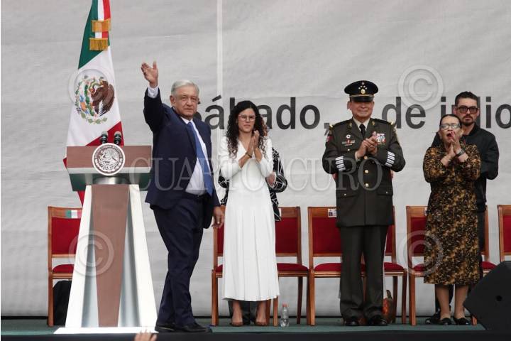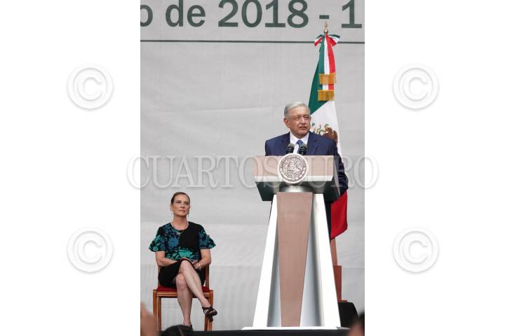 Andrés Manuel López Obrador, presidente de México, durante su llegada al Festejo por los 5 años del Triunfo Democrático para la Transformación de México realizado en el Zócalo capitalino