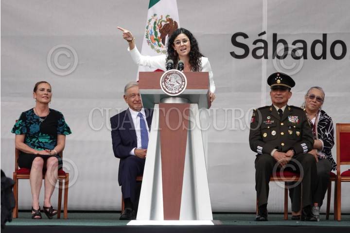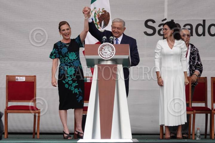 Luisa María Alcalde Luján, secretaria de Gobernación, durante su participación en el Festejo por los 5 años del Triunfo Democrático para la Transformación de México realizado en el Zócalo capitalino