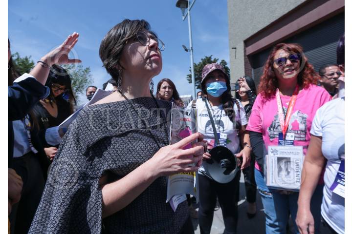 Edith Olivares Ferreto Directora Ejecutiva de Amnistía Internacional México acompaño a familias de víctimas de feminicidio quienes exigen una disculpa pública por parte de la FGJEM ante las deficiencias de las investigaciones de diversos casos así como malos tratos por parte de las autoridades.