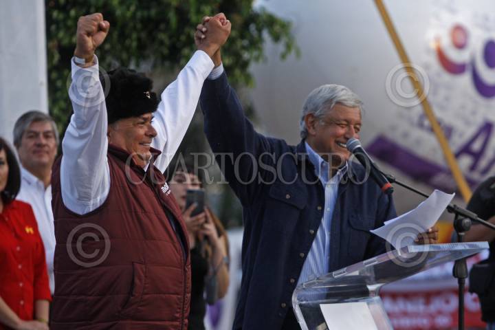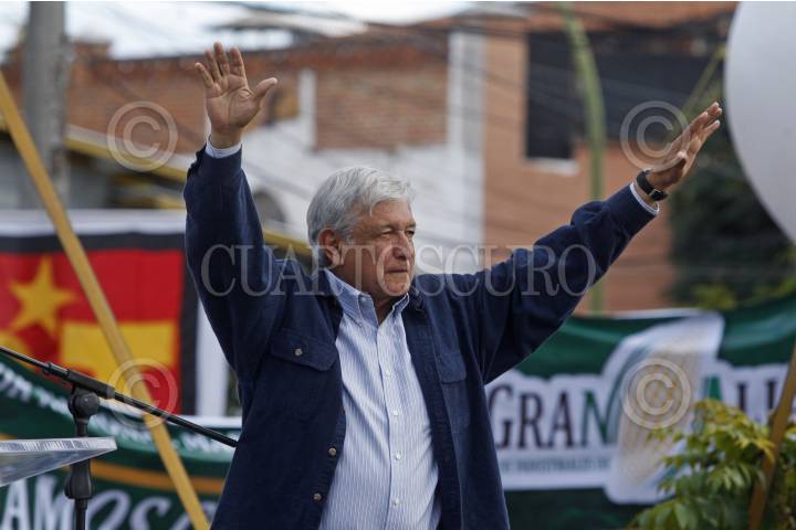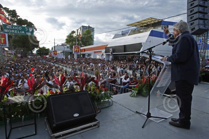 GUADALAJARA, JALISCO, 11FEBRERO2018.- Andrés Manuel López Obrador AMLO pre candidato a la Presidencia de la Republica por el Partido MORENA, cerro su pre campaña en la inmediaciones de la Glorieta de los Niños Héroes, lugar al que acudieron miles de simpatizantes a su movimiento Regeneración Nacional. FOTO: FERNANDO CARRANZA GARCIA / CUARTOSCURO.COM