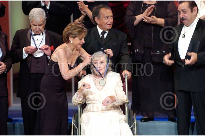 MÉXICO, D.F. 28SEPTIEMBRE2006.- Amparito Arozamena fue homenajeada y recibió una medalla de reconocimiento por parte de las nuevas generaciones de humoristas en el evento dedicado al humor, la 1era Gran Gala de la Comedia, mismo que se transmitirá el día sábado 30 de septiembre a las 21:15 horas por el canal de las Estrellas. FOTO: TELEVISA/CUARTOSCURO.COM