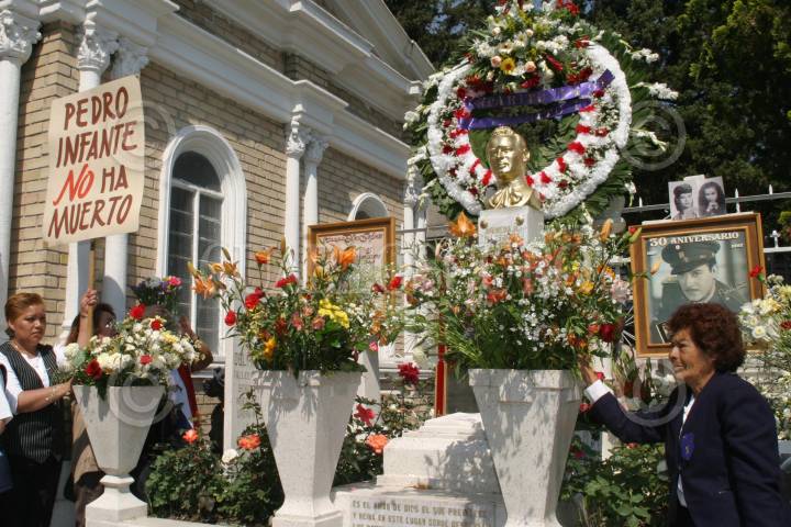México, D. F. 15 Abril 2004.- Hoy se cumplen 47 años de la muerte del idolo de México Pedro Infate, para recordarlo admiradores se dieron cita en el panteón Jardín para vistar su tumba. FOTO: Nelly Salas/CUARTOSCURO.COM