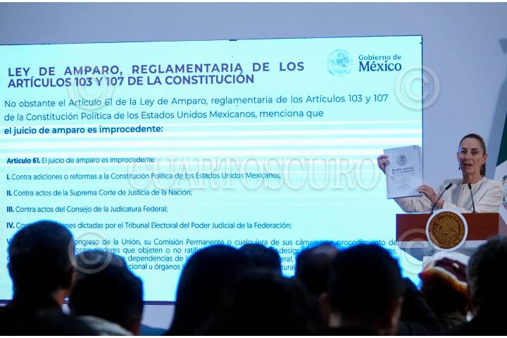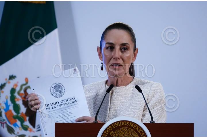 CIUDAD DE MÉXICO, 22OCTUBRE2024.- Claudia Sheinbaum Pardo, presidenta de México, sostiene el Diario Oficial de la Federación (DOF) al momento de responder acerca de la petición de un juicio de amparo para eliminar la declaratorio de la Reforma al Poder Judicial, durante la “Mañanera del Pueblo” desde Palacio Nacional. FOTO: GALO CAÑAS/CUARTOSCURO.COM