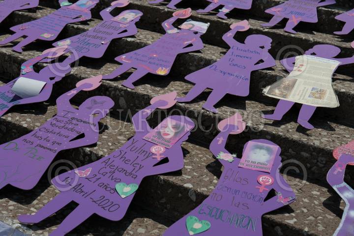 CIUDAD DE MÉXICO, 26JUNIO2024.- Varios carteles fueron puestos en las escaleras de la sede del Poder Judicial Federal de San Lázaro durante la manifestación convocada por madres de víctimas de feminicidio para que se les niegue el amparo a los feminicidas de sus hijas de y para pedir justicia. FOTO: ALICE MORITZ/CUARTOSCURO.COM FOTO: ALICE