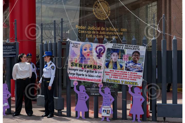 CIUDAD DE MÉXICO, 26JUNIO2024.- Varios carteles fueron puestos frente a la sede del Poder Judicial Federal de San Lázaro durante la manifestación convocada por madres de víctimas de feminicidio para que se les niegue el amparo a los feminicidas de sus hijas de y para pedir justicia. FOTO: ALICE MORITZ/CUARTOSCURO.COM FOTO: ALICE