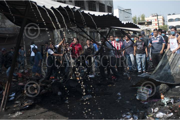 MÉXICO, D.F., 26ENERO2014.- Locatarios y vecinos del Mercado de la Merced acudieron a levantar escombros luego de que se suscitó un incendio que consumió parte del Mercado de Dulces del Mercado Ampudia ubicado entre las calles Santa Escuela, Rosario y General Anaya, así como negocios aledaños. FOTO: IVÁN STEPHENS /CUARTOSCURO.COM