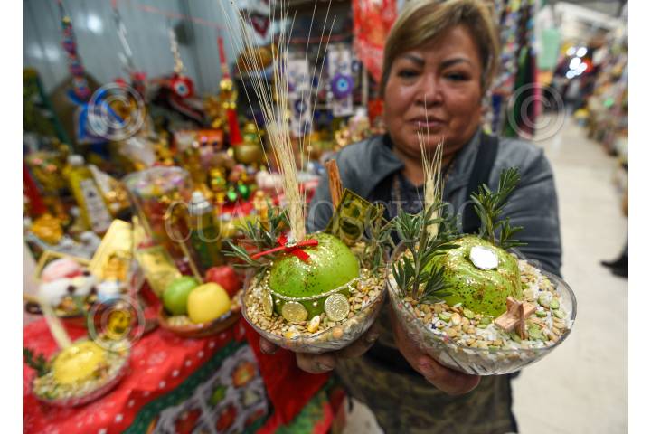 TOLUCA, ESTADO DE MÉXICO, 30DICIEMBRE2024.- Para recibir el Año Nuevo muchas personas acuden al Mercado 16 de Septiembre para adquirir diversos amuletos o rituales y pedir por un buen año, ya sea en el amor, salud, trabajo, dinero, entre otros, las más pedidas son las manzanas preparas, borreguitos, ojos turcos, elegantes, budas, pulseras protectoras entre otras. FOTO: CRISANTA ESPINOSA AGUILAR /CUARTOSCURO.COM