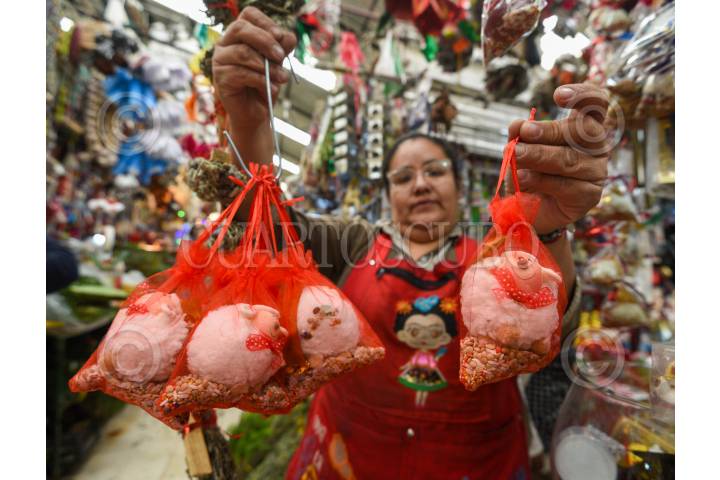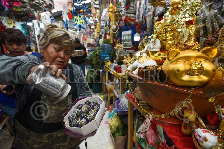 CIUDAD DE MÉXICO, 29DICIEMBRE2024.- Amuletos de la buena suerte para el siguiente año están en venta en el Mercado Sonora. FOTO: DANIEL AUGUSTO/ CUARTOSCURO.COM