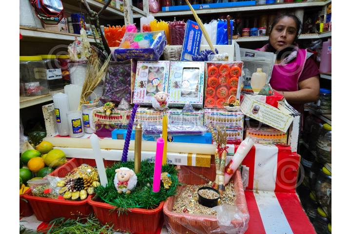 CIUDAD DE MÉXICO, 30DICIEMBRE2O23.- Una comerciante vende amuletos en la alcaldía Iztapalapa para el inicio Año Nuevo 2024. FOTO: GRACIELA LÓPEZ /CUARTOSCURO.COM
