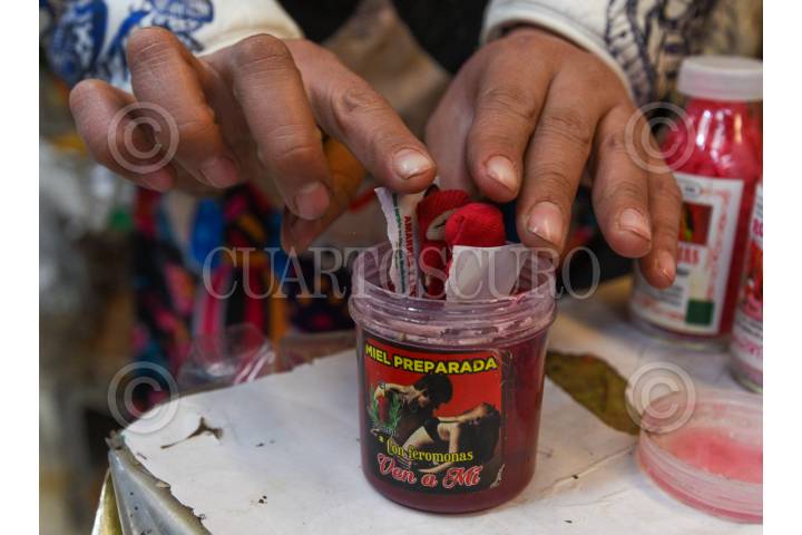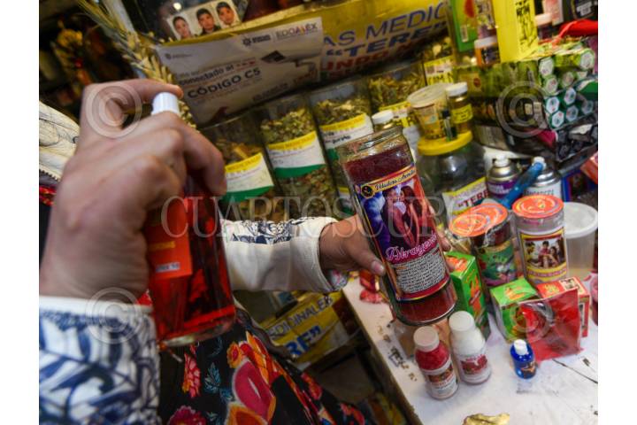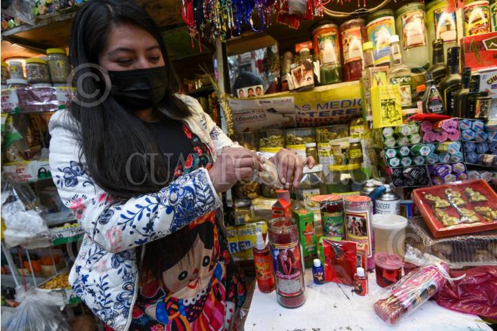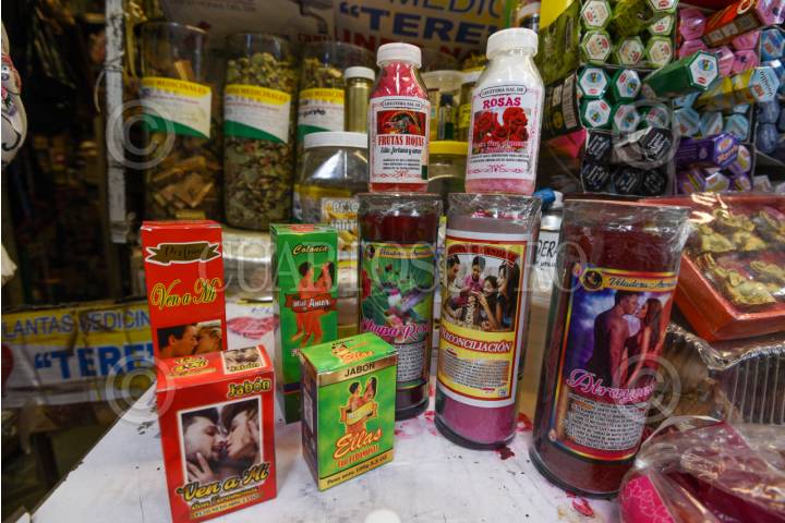 TOLUCA, ESTADO DE MÉXICO, 13FEBRERO2024.- Para el Día del Amor y la Amistad muchas personas recurren a diversos rituales que son utilizados para tener suerte en amor, como jabones, chupamirtos, amuletos, feromonas, velas, sales de baño, colonias, entre otros, en el Mercado 16 de Septiembre se pueden adquirir estos productos, en Plantas Medicinales “Tere”, quienes buscan más ayuda de estos rituales con las mujeres, que buscan el amor, amarres, reconciliaciones, entre otras cosas, los precios van desde los 30 pesos hasta los 100 pesos. FOTO: CRISANTA ESPINOSA AGUILAR /CUARTOSCURO.COM