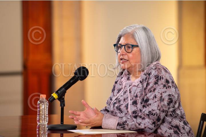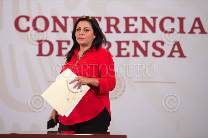 Ana Bárbara Mungaray, durante en la conferencia de Créditos en Palacio Nacional. FOTO: ROGELIO MORALES /CUARTOSCURO.COM