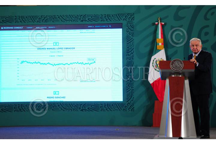 Andrés Manuel López Obrador, presidente de México, muestra su nivel de aceptación que resultó de una encuesta internacional.