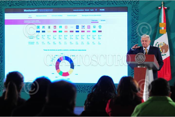Andrés Manuel López Obrador, presidente de México, muestra un monitoreo realizado por el INE durante las pasadas elecciones.