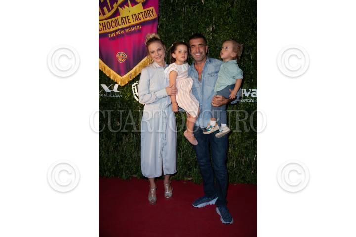 Ana Layevska y su esposo Rodrigo Moreira y sus hijos Masha y Santiago a su paso por la alfombra roja del musical “Charlie and the Chocolate Factory” en el CCT1.