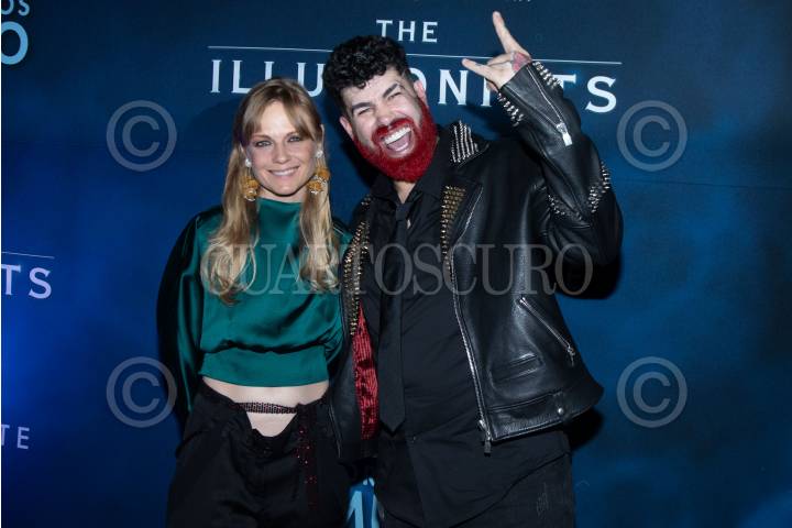 Ana Layevska y Aryel Altamar a su paso por la alfombra roja por el estreno del espectáculo de magia "The Illusionists", que se presenta en el Teatro Telcel.