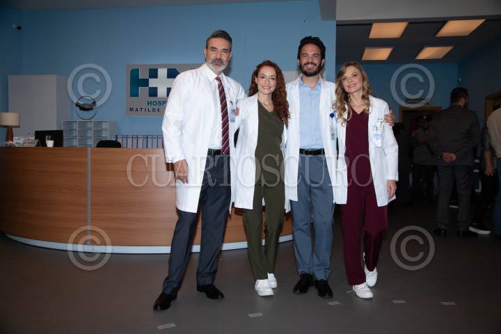 Mauricio Islas, Marimar Vega, Kuno Becker y Ana Layevska durante el claquetazo de la nueva serie de TV Azteca, "Dra. Lucía, Un don extraordinario".