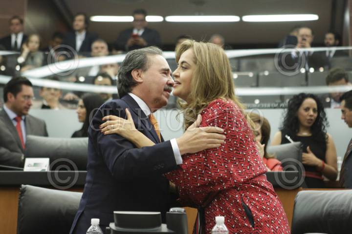 CIUDAD DE MÉXICO, 29JUNIO2016.- La senadora Ana Lilia Herrera Anzaldo (PRI) pidió licencia ante la Comisión Permanente para desempeñarse como secretaria de Educación del Estado de México. En la imagen la despide su coordinador Emilio Gamboa. FOTO: CUARTOSCURO.COM
