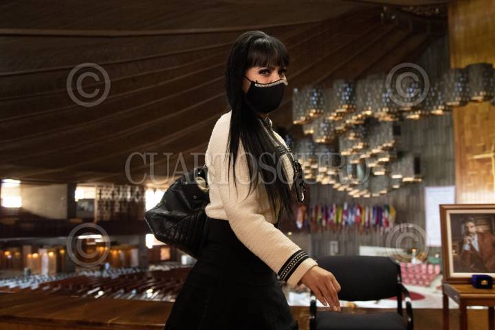 La actriz Maribel Guardia durante la misa en memoria de Diego Verdaguer en la Basílica de Guadalupe.