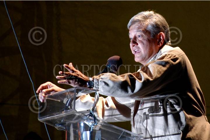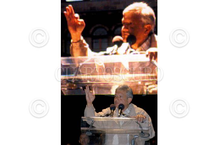 MÈXICO, D.F. 24AGOSTO2006.- Se llevò a cabo en el Zòcalo capitalino, la asamblea informatva en la que Andés Manuel López Obardor, candidato a la presidencia de la república de la coalición Por el Bien de Todos, menciono que hoy los ministros del Tribunal Electoral del Poder Judicial de la Federación tienen dos caminos: actuar con decoro, rectitud y patriotismo o el de la traición e irse al basurero de la historia FOTO: Guillermo Perea/CUARTSCURO.COM